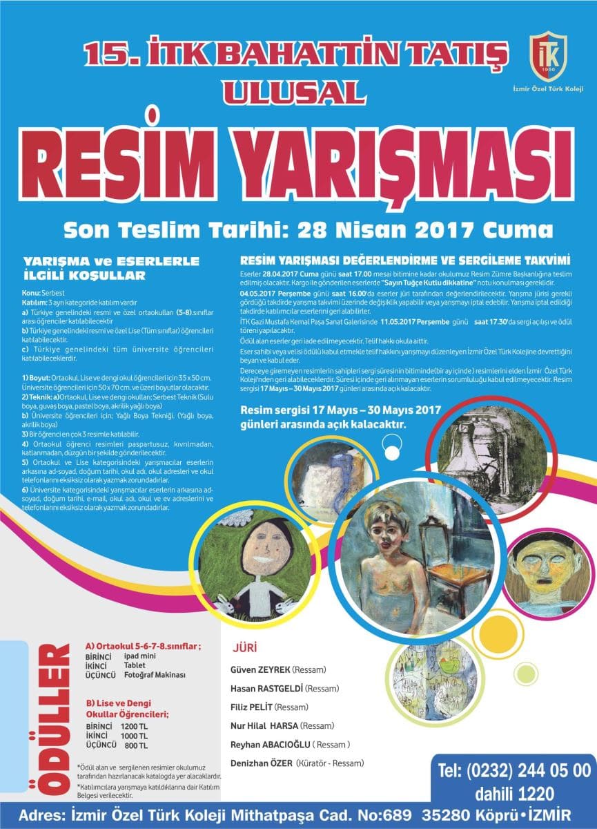 İzmir Özel Türk Koleji, 2016-2017 Eğitim ve Öğretim yılında Türkiye genelindeki Ortaokul, Lise ve dengi okullar ile Üniversite öğrencilerini kapsayan “Geleneksel İTK Bahattin Tatış Resim Yarışması” nın 15.’si düzenlenmektedir.