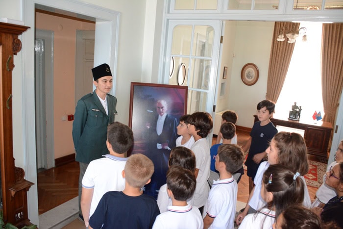 9 Eylül’ün 100. Yıldönümünün hemen ardından gelen ve İTK’lılar için büyük önemi olan köşkten, 14 Eylül Çarşamba sabahı Köşk Müdürü Sn. Cemal Necip Gürel’in anlatımıyla bir canlı yayın gerçekleşti. Tüm öğrencilerin canlı bağlantıyla izlediği yayında, Gürel, köşkün tarih içindeki öneminden bahsederken, Mustafa Kemal Paşa’ya gelen önemli konukların ağırlandığı köşkün başodasında, İTK Yönetim Kurulu Başkanı Sn. Oğuz Tatış ve İTK Genel Müdürü Sn. Yiğit Tatış’tan köşkle ilgili anıları da dinledi. İzmir Özel Türk Koleji olarak üstlendikleri tarihsel misyona dikkat çeken İTK Genel Müdürü Sn. Yiğit Tatış şunları şöyledi: “Kurtuluşun ve kuruluşun 100. yıldönümünü kutlamaya hep birlikte hazırlandığımız bu süreçte Ata’nın izinde bir kurum olmanın gururunu yaşıyoruz. Yetiştirdiğimiz gençler için daha fazlasını ortaya koyma irademizin daha da belirginleştiği bu günlerde İzmir Özel Türk Kolejli olmanın haklı gururunu bir kez daha yaşıyoruz.”