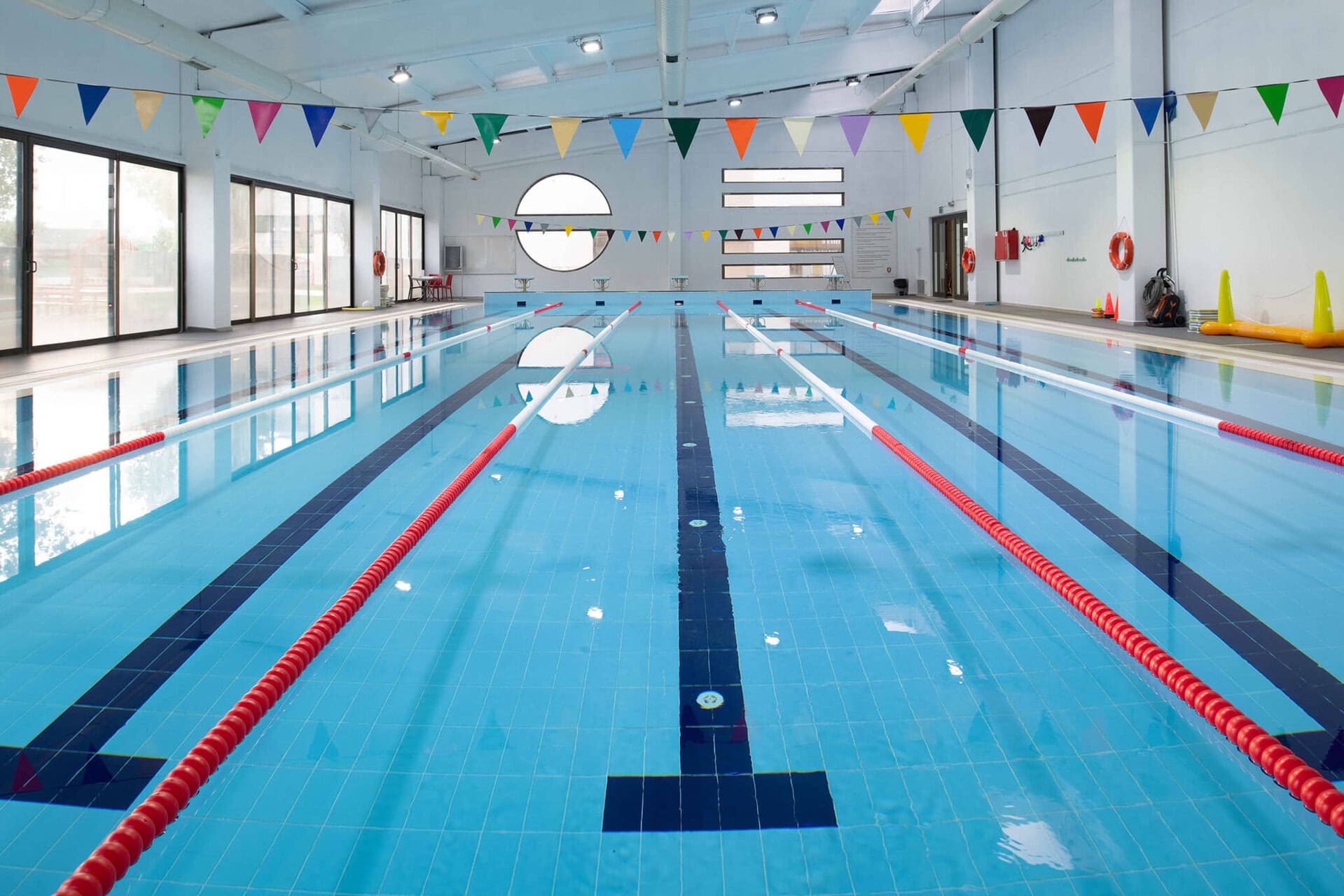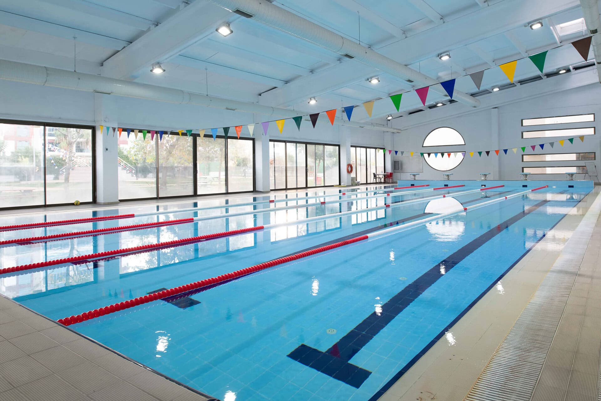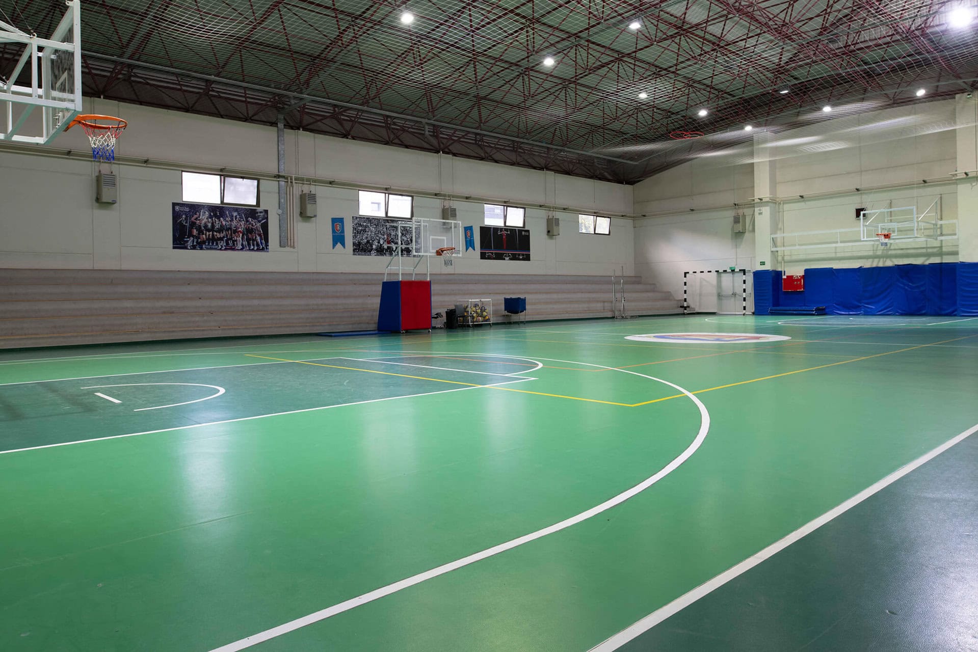 Geniş spor alanları ve donanımlı konferans salonu.